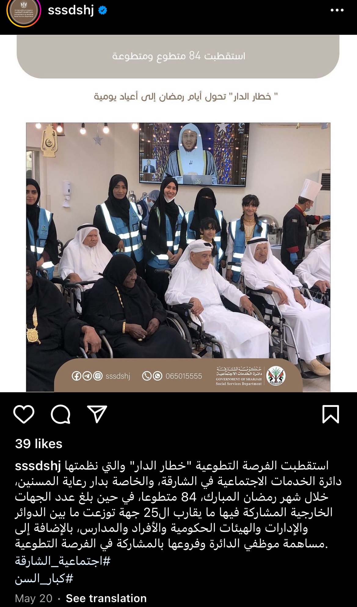إلى مركز خدمات كبار السن، إلى جانب مجموعة من طالبات مدرسة الإمارات الوطنية،